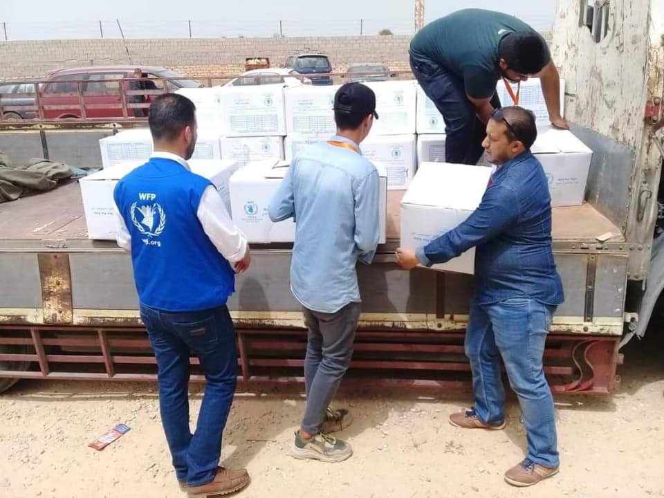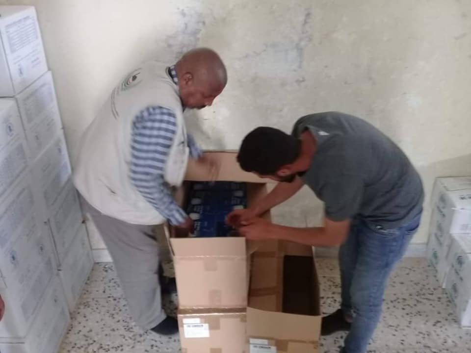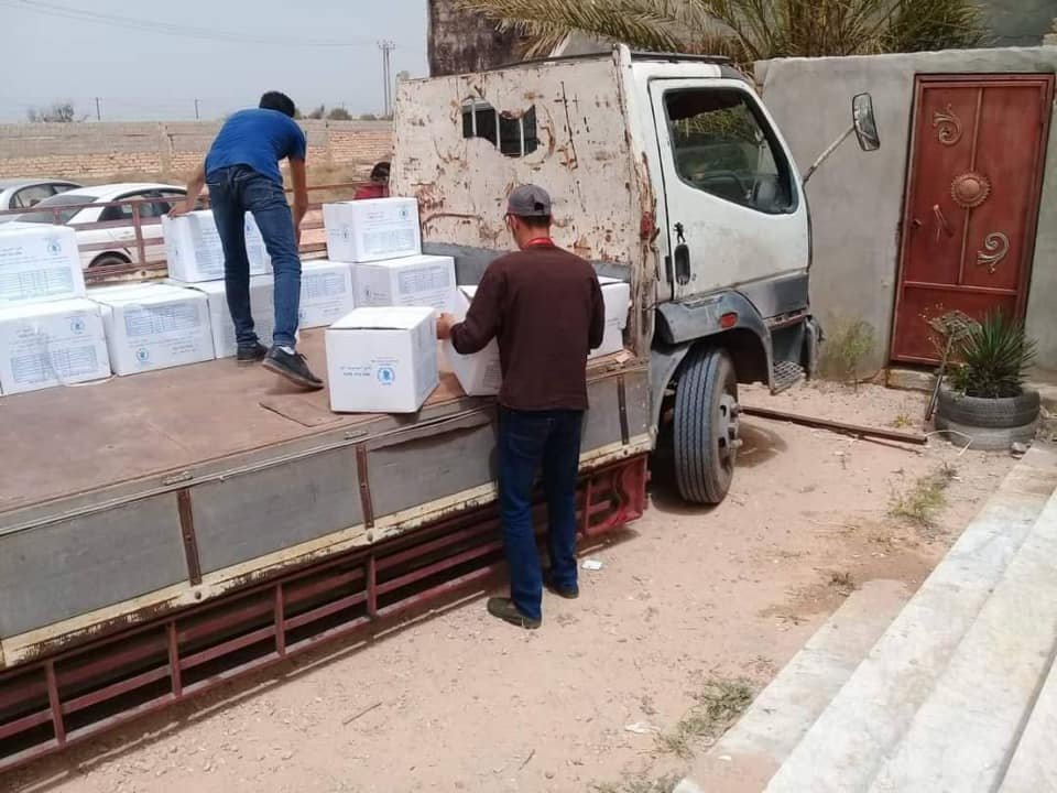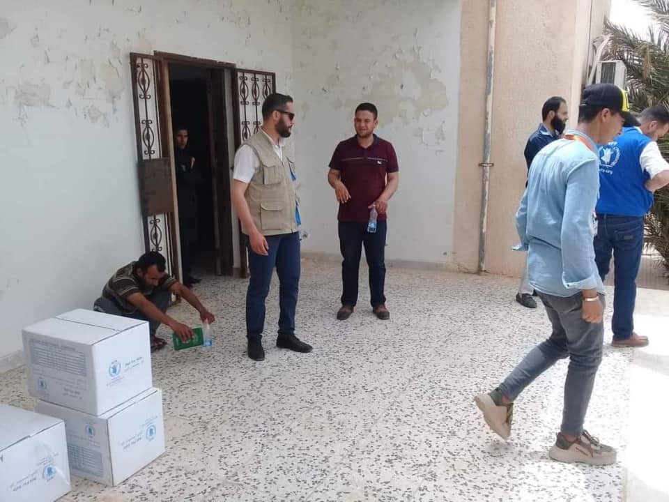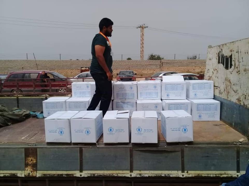 In cooperation with the World Food Program (WFP), basic food aid was distributed targeting (65 displaced families) in the city of Sabratha after their displacement due to the security situation in the capital Tripoli.