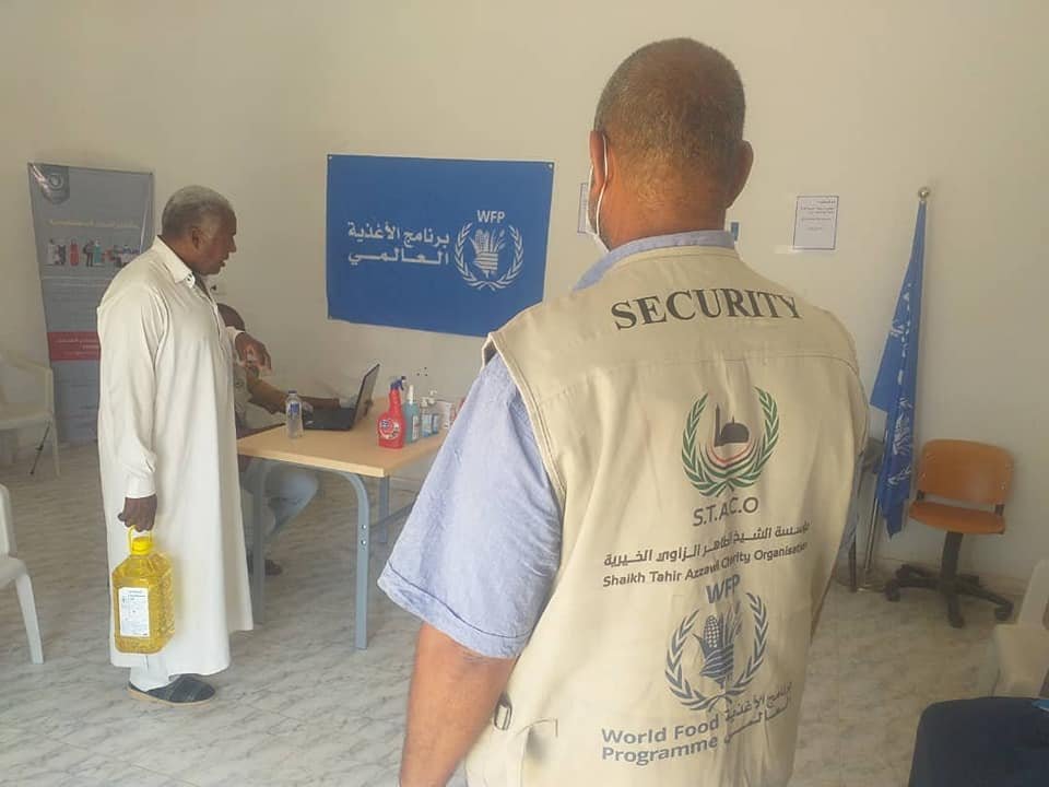 The relief team of Sheikh Taher Al-Zawi Charitable Foundation STACO, in cooperation with its partners in the World Food Program (WFP), distributed food aid to low-income families and displaced families in the city of Al-Shati in southern Libya, where the distribution was concentrated in two points in the city: Brak Al-Shati and Barqan Al-Shati. The distribution targeted 979 families in the city.