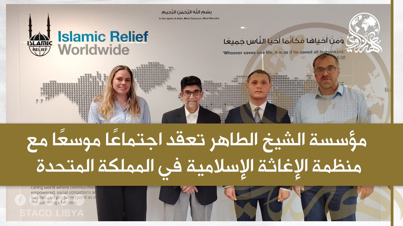The Chairman of the Board of Directors of the Sheikh Tahir Al-Zzawi charity organization, Mr. Salem Al-Qammoudi, and the Director of Programs held an expanded meeting with senior officials at the Islamic Relief headquarters in Birmingham, to discuss ways of cooperation in the strategic partnership between the two institutions.